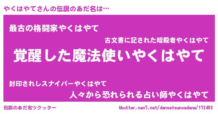 ポケモン風あだ名 ヒヤクハヤテ』『ヤクセウス