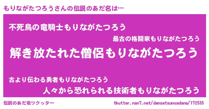 | 肩書あだ名 | 『もりながたつろう中尉』 |