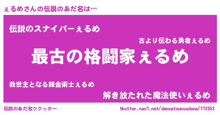 | ヒーロー風カッコイイあだ名 | 『ウルトラぇるめマン』『仮面ェルダー』 |