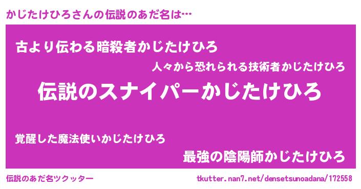 | 男性向けラノベタイトル風あだ名 | 『カジタケヒロスレイヤー』 |