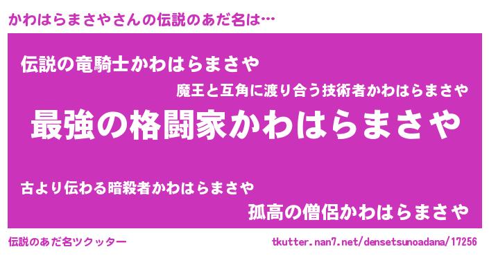 | 意味不明あだ名 | 『かわはらまさやフォーエバー』 |