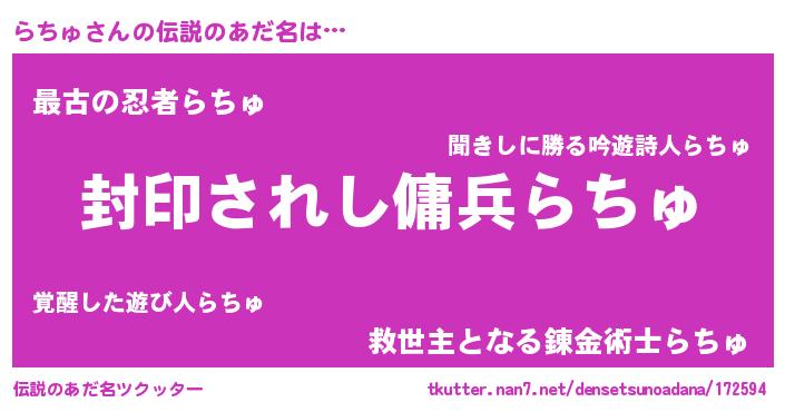 | ヒーロー風カッコイイあだ名 | 『最強戦士ラチュ』『スーパーラチュ』 |