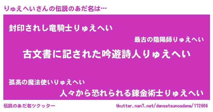 | ヘコむあだ名 | 『りゅえへい(笑)』『りゅにー』 |