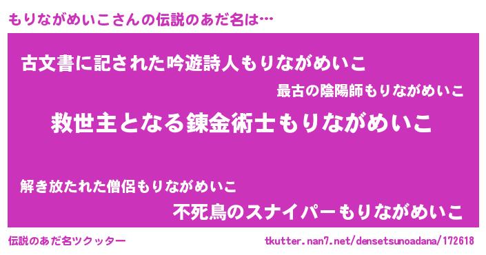 | 意味不明あだ名 | 『住所不定無職もりながめいこ(81歳)』 |