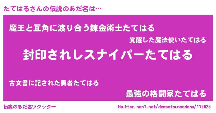 | 胡散臭い通販商品みたいなあだ名 | 『億万長者になれる霊験あらたかなお札…その名も「たてはる」』 |