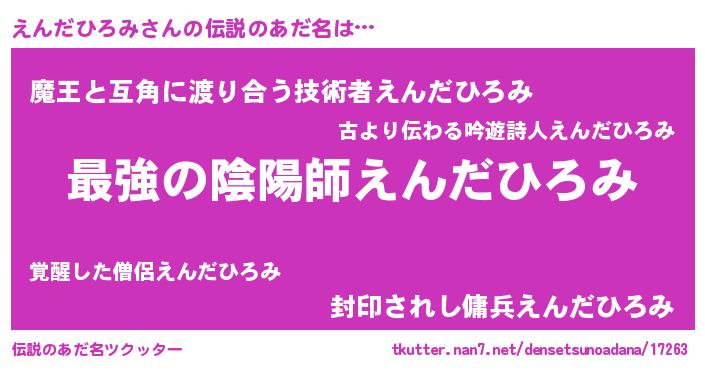 | ファンタジー風あだ名 | 『エターナルエンダヒロミー』 |