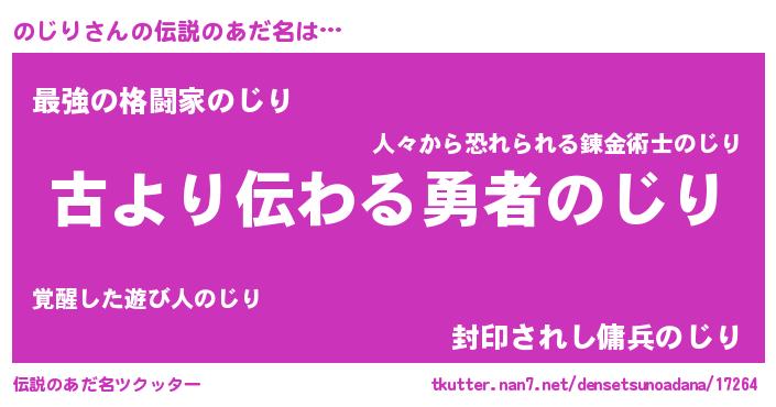 | ヒーロー風カッコイイあだ名 | 『ネオノジリ』『ウルトラのじりマン』 |