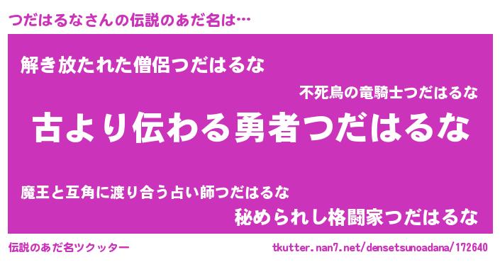 | 意味不明あだ名 | 『永久保存つだはるな』『自称つだはるな』 |