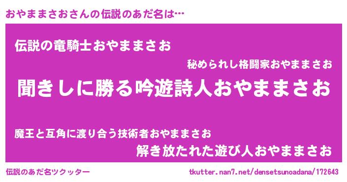 | ヘコむあだ名 | 『おやままさお(小並感)』『おやふぇ~』 |