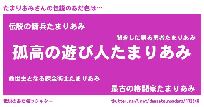 | 意味不明あだ名 | 『自称たまりあみ』『ペロリンたまりあみ』 |