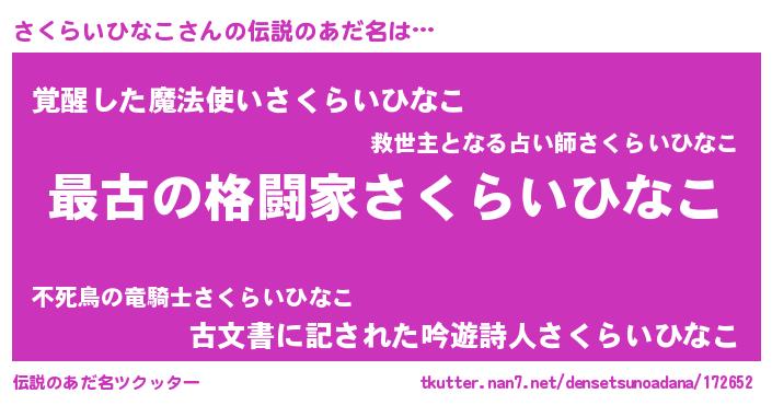 | ファンタジー風あだ名 | 『エターナルサクライヒナコー』 |