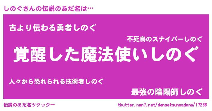 | ヘコむあだ名 | 『しのを』『しのぐ(遠い目)』 |