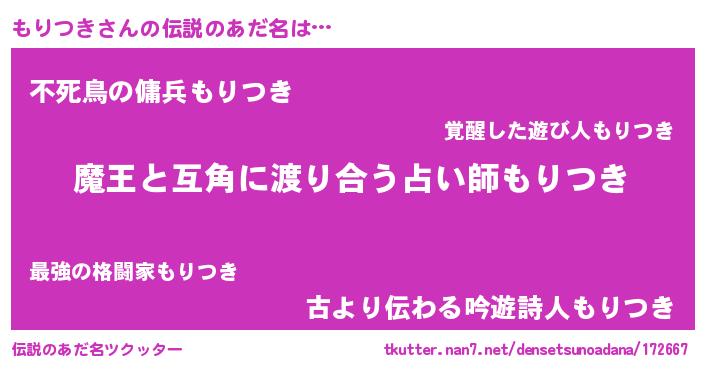| 女子向けラノベタイトル風あだ名 | 『もりつき恋絵巻』 |