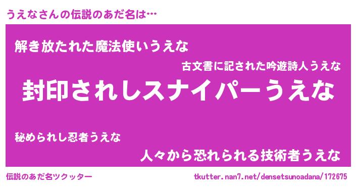 | 意味不明あだ名 | 『自称うえな』『しいたけ科うえな属』 |