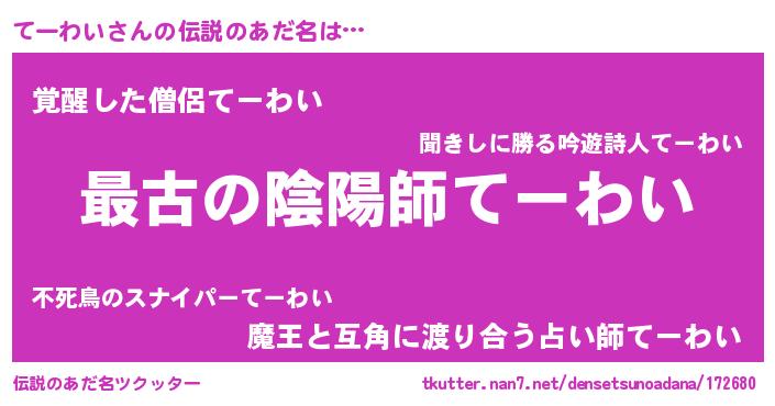 | ヒーロー風カッコイイあだ名 | 『ウルトラてーわいマン』『天弓騎士テー』 |
