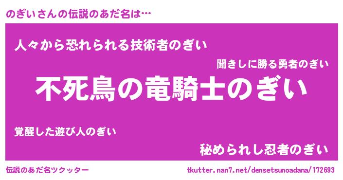 | 女子向けラノベタイトル風あだ名 | 『のぎい姫と円卓の騎士』 |