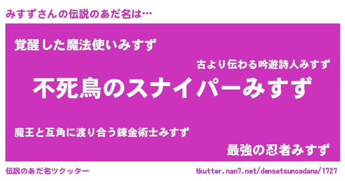 | ヒーロー風カッコイイあだ名 | 『スーパーミスズ』『仮面ミスダー』 |
