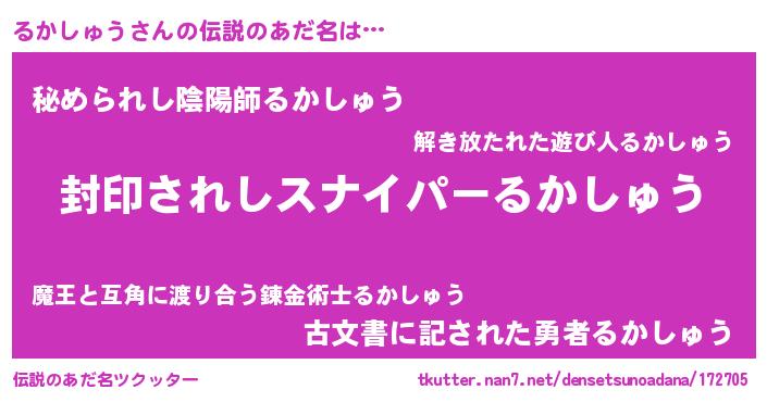 | 胡散臭い通販商品みたいなあだ名 | 『億万長者になれる霊験あらたかなお札…その名も「るかしゅう」』 |