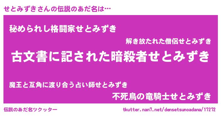 | ポケモン風あだ名 | 『ゼニセト』『セトミダネ』 |