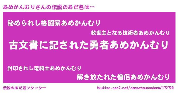 | 意味不明あだ名 | 『永久保存あめかんむり』 |