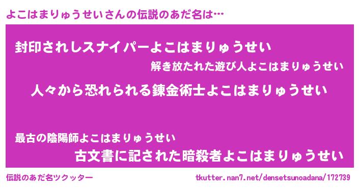 | 意味不明あだ名 | 『自称よこはまりゅうせい』 |