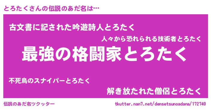 | 意味不明あだ名 | 『とろたくフォーエバー』『自称とろたく』 |