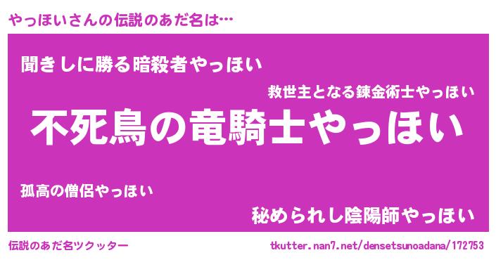 | ファンタジー風あだ名 | 『ヤッフェル』『ヤッディッシュ』 |