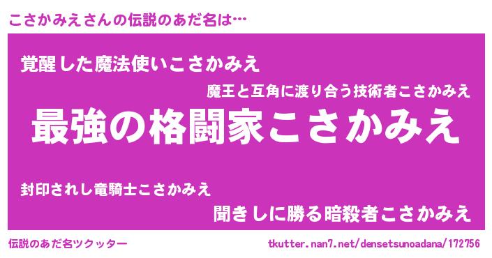 | 意味不明あだ名 | 『こさかみえフォーエバー』 |