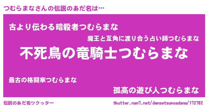 | 女子向けラノベタイトル風あだ名 | 『つむらまなの玉の輿計画!』 |