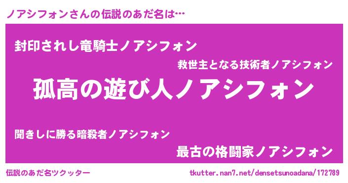 | 胡散臭い通販商品みたいなあだ名 | 『信頼と実績のペンダント…その名も「ノアシフォン」』 |