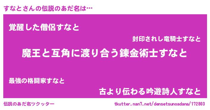 | 女子向けラノベタイトル風あだ名 | 『すなと恋絵巻』『すなと様がみてる』 |