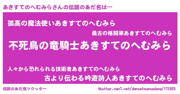 | ヒーロー風カッコイイあだ名 | 『スーパーアキステノヘムミラ』 |