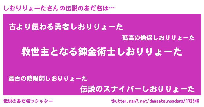 | 胡散臭い通販商品みたいなあだ名 | 『モンドセレクションを受賞した隕石のかけら…その名も「しおりりょーた」』 |