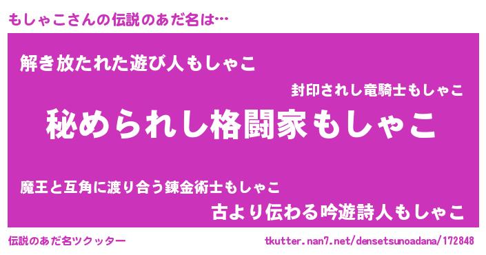 | 意味不明あだ名 | 『もしゃこフォーエバー』 |