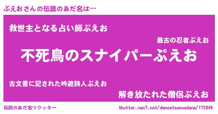 | 意味不明あだ名 | 『ペロリンぷえお』『自称ぷえお』 |