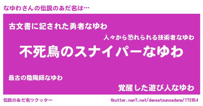| 意味不明あだ名 | 『住所不定無職なゆわ(79歳)』『自称なゆわ』 |