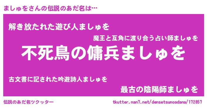 | 女子向けラノベタイトル風あだ名 | 『ましゅを姫と円卓の騎士』 |