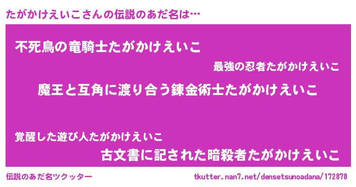 | 胡散臭い通販商品みたいなあだ名 | 『お金では代えられない隕石のかけら…その名も「たがかけえいこ」』 |