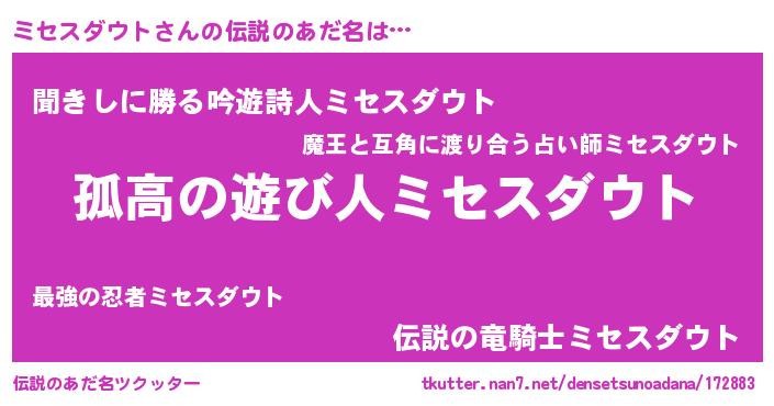 | 胡散臭い通販商品みたいなあだ名 | 『信頼と実績のペンダント…その名も「ミセスダウト」』 |