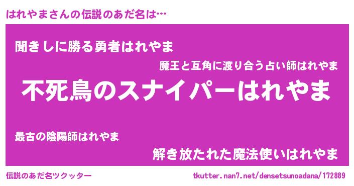| 胡散臭い通販商品みたいなあだ名 | 『モテモテ間違いなし霊験あらたかなお札…その名も「はれやま」』 |