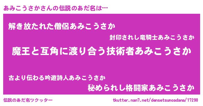 | 肩書あだ名 | 『あみこうさか船長』『あみこうさか教授』 |