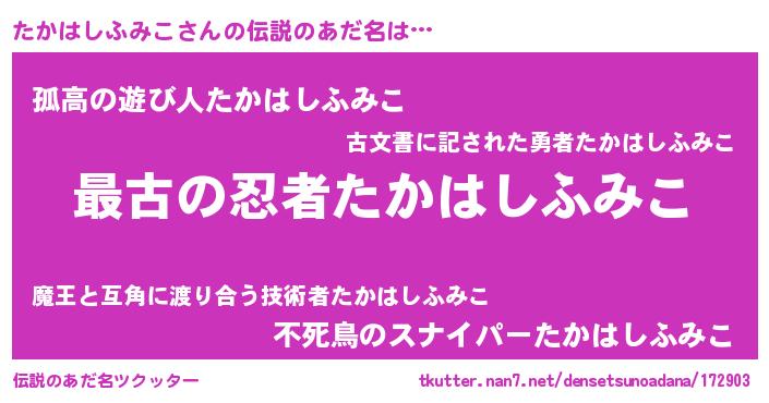 | 意味不明あだ名 | 『たかはしふみこフォーエバー』 |