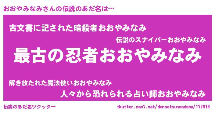 | 意味不明あだ名 | 『おおやみなみフォーエバー』 |