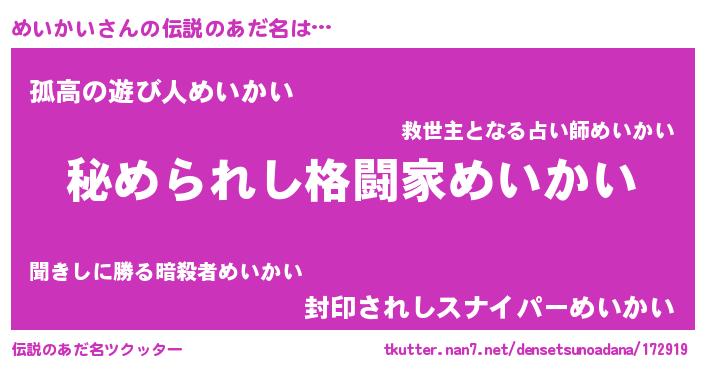 | 意味不明あだ名 | 『めいかいフォーエバー』『自称めいかい』 |