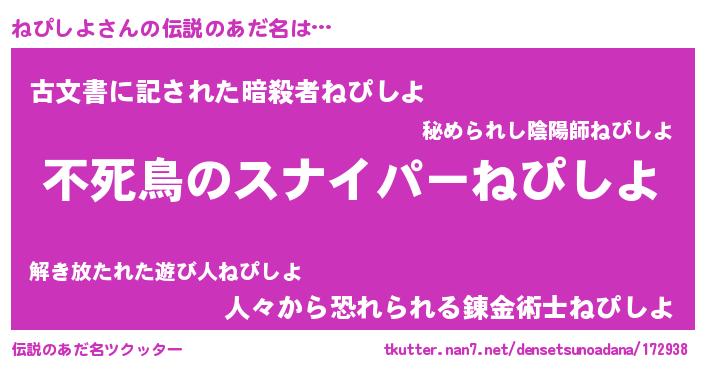 | 意味不明あだ名 | 『自称ねぴしよ』『ペロリンねぴしよ』 |