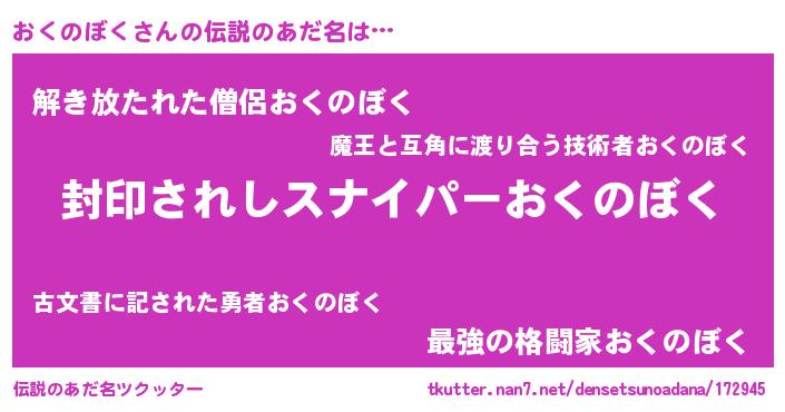 | ヒーロー風カッコイイあだ名 | 『スーパーオクノボク』『幻影騎士オク』 |