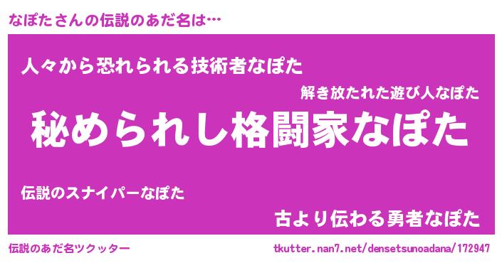 | 料理風あだ名 | 『なぽたごはん』『なぽたのトマト煮』 |
