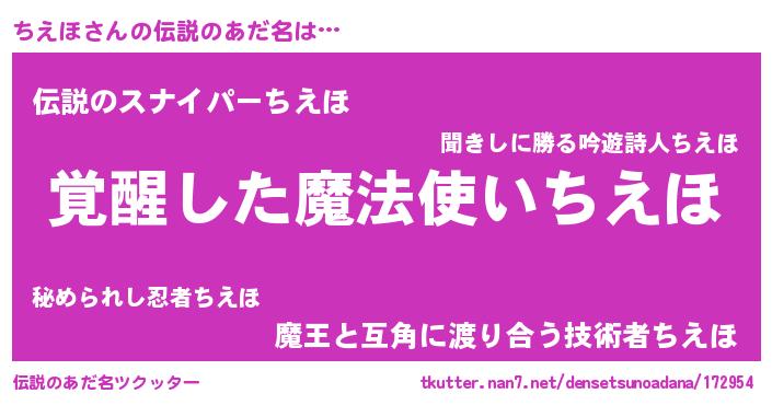 | ヒーロー風カッコイイあだ名 | 『幻影騎士チエ』『ウルトラ戦士チエホ』 |