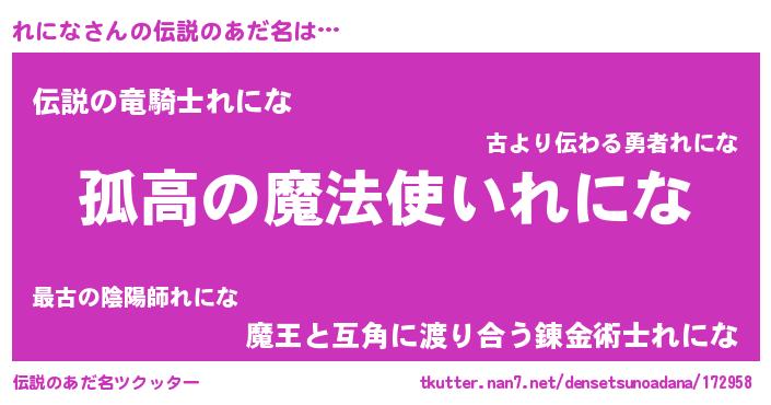 | 胡散臭い通販商品みたいなあだ名 | 『信頼と実績のサプリメント…その名も「れにな」』 |
