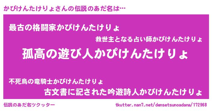 | 胡散臭い通販商品みたいなあだ名 | 『信頼と実績のペンダント…その名も「かぴけんたけりょ」』 |